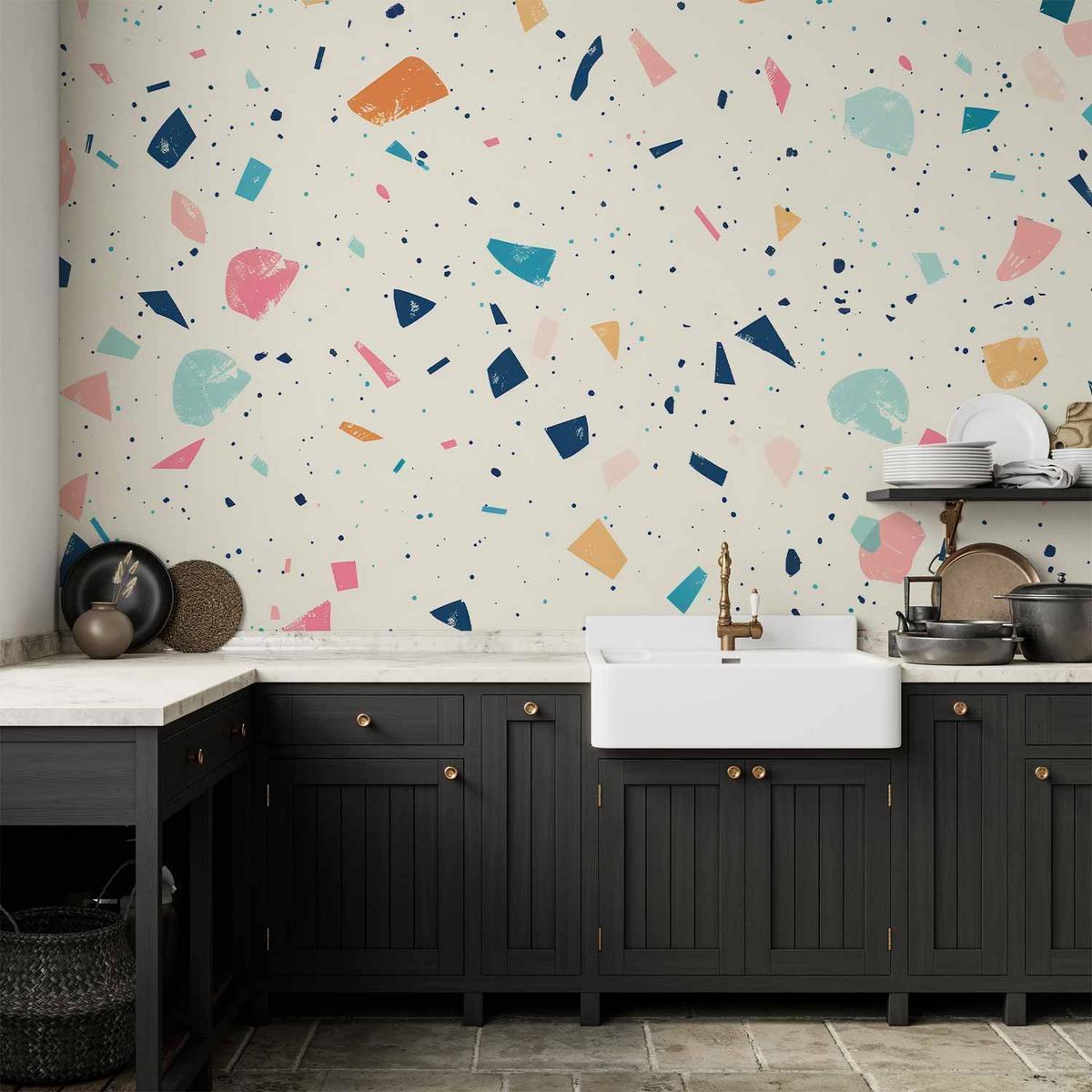 Papier peint - Motif Terrazzo Multicolore sur Fond Clair