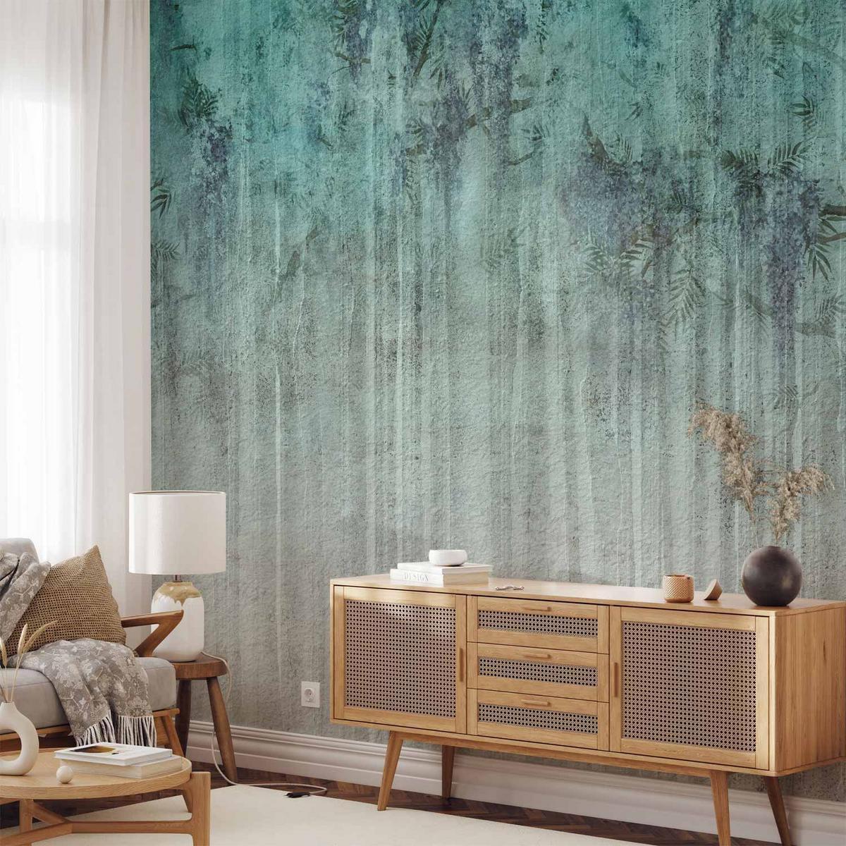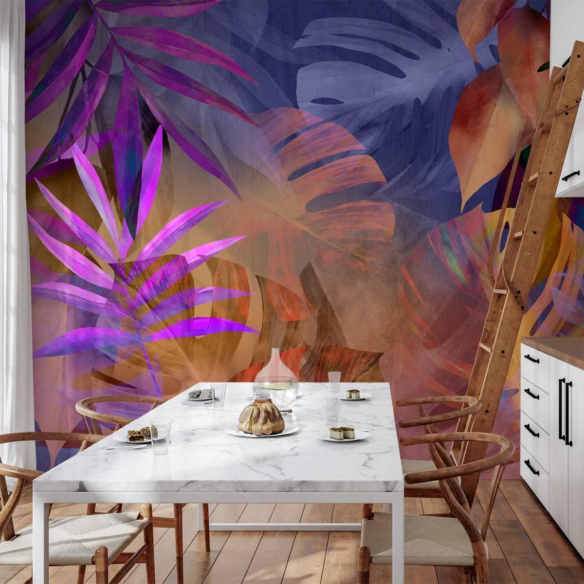 Papier peint - Nature rétro avec paysage de jungle et feuillages délicats