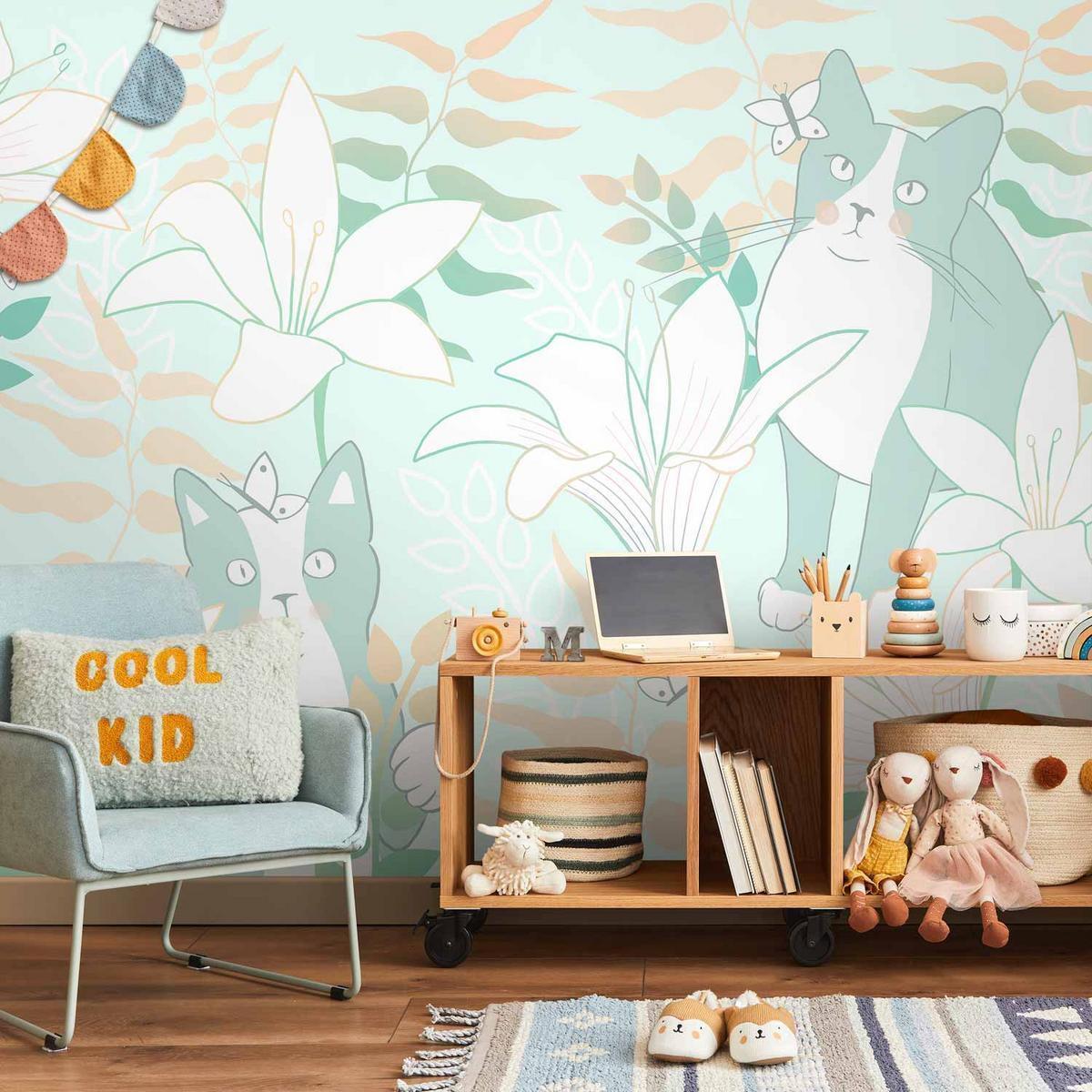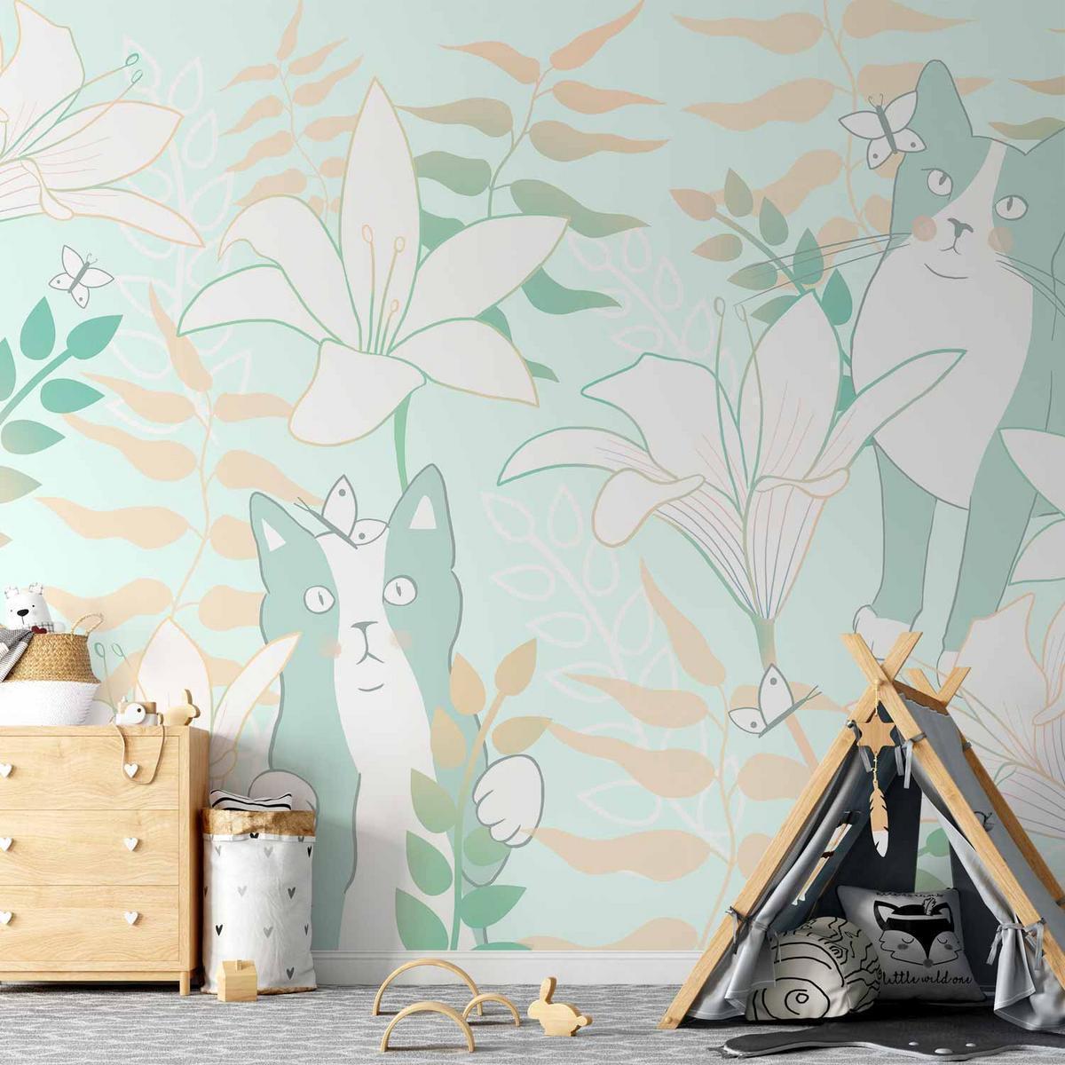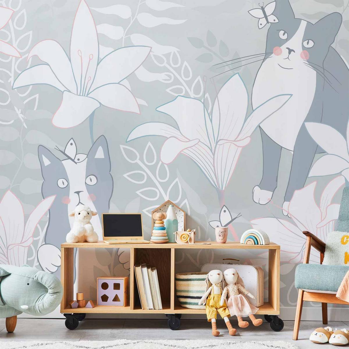 Tableau - Chats Enchantés avec Fleurs et Papillons