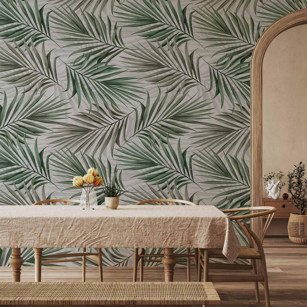 Tableau - Grandes Feuilles en Teintes de Vert et Menthe : Motif Botanique