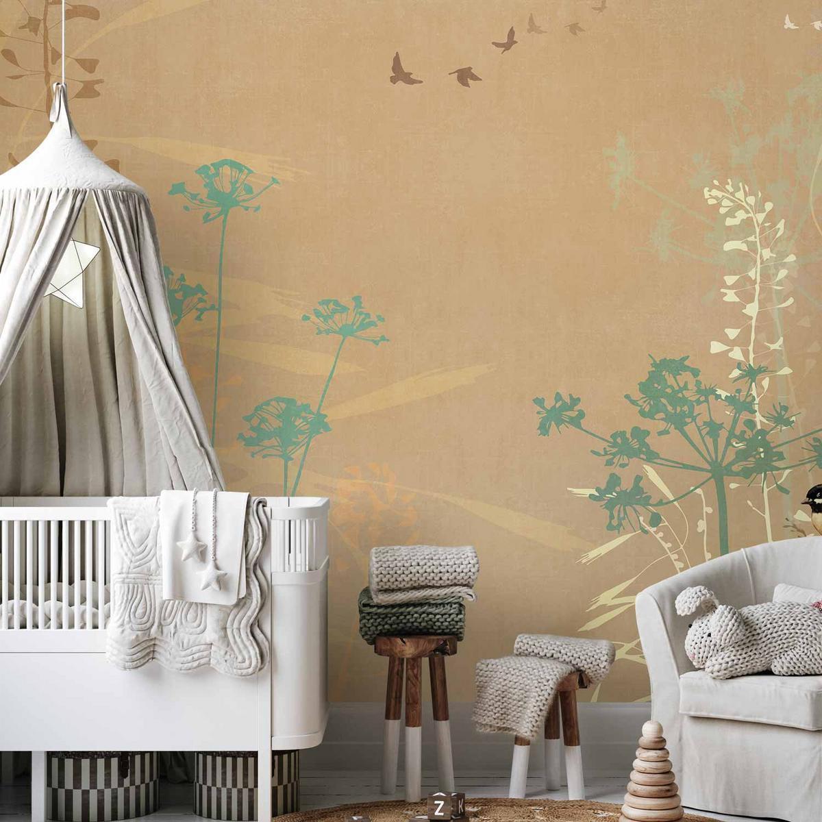 Tiny Bird - Paravent japonais illustré de fleurs colorées et nuances dorées du coucher de soleil