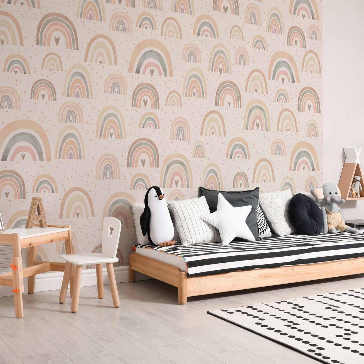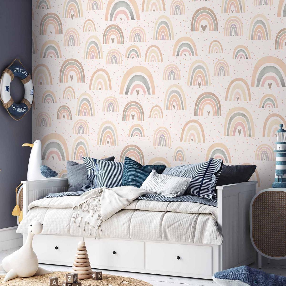 Papier peint – Arc-en-ciel et Cœurs