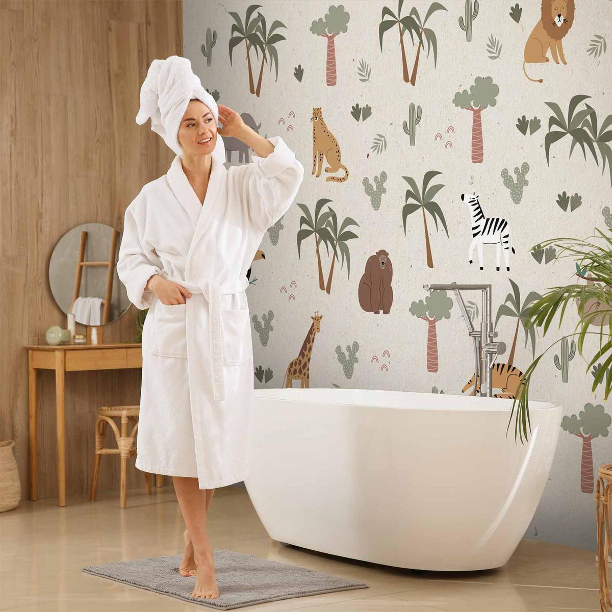 Transformez la chambre de votre enfant avec le Papier peint – Composition africaine avec animaux. Ce papier peint premium allie élégance et fonctionnalité, offrant un décor vibrant et ludique tout en étant facile à entretenir grâce à sa finition lavable.
