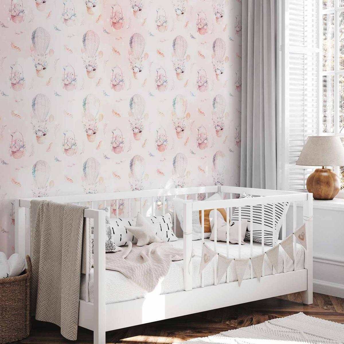 Soyez le premier à laisser votre avis sur “Papier peint – Motif avec plumes et lapins dans un panier et un ballon pour enfants”