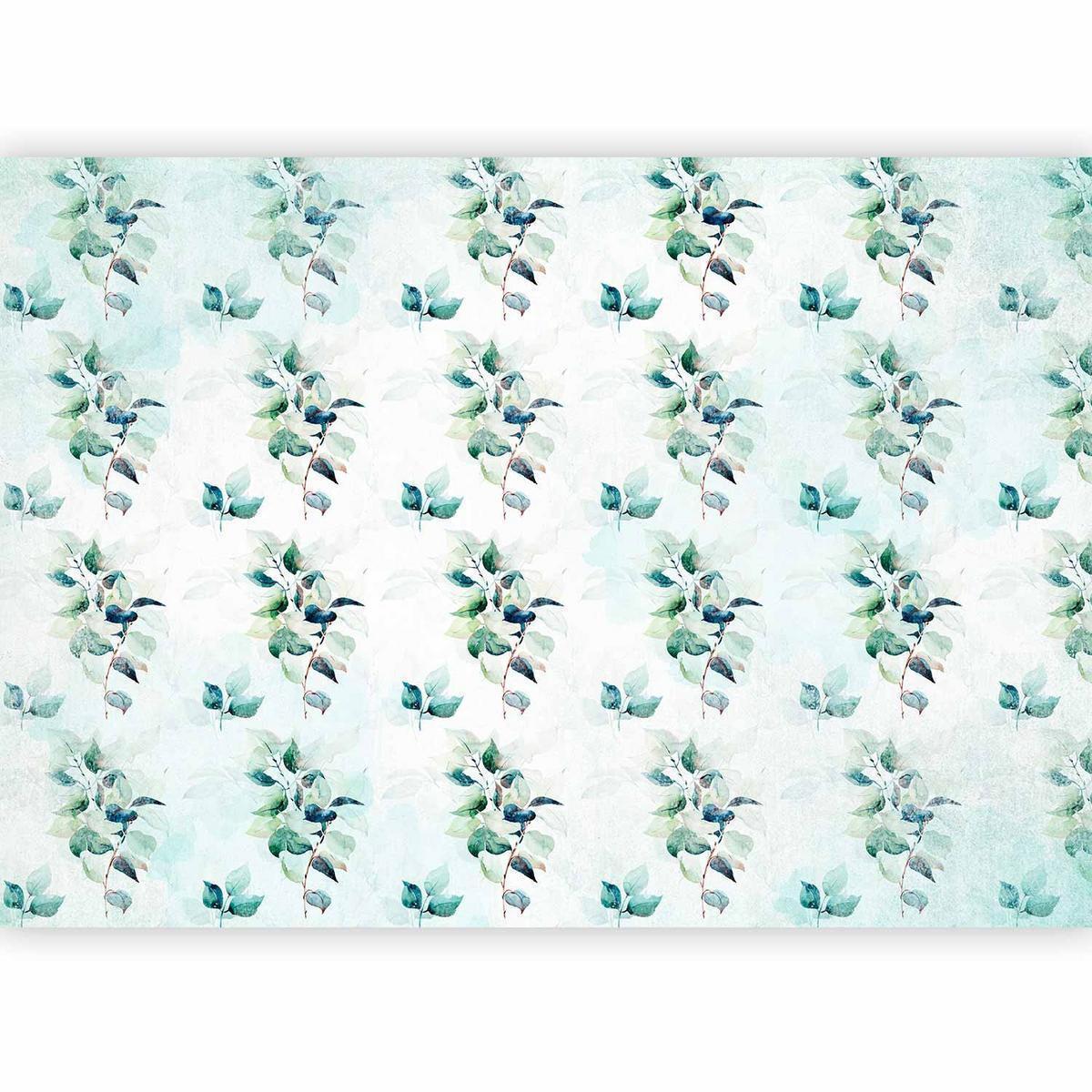Papier peint – Motif floral avec feuilles vertes sur fond menthe
