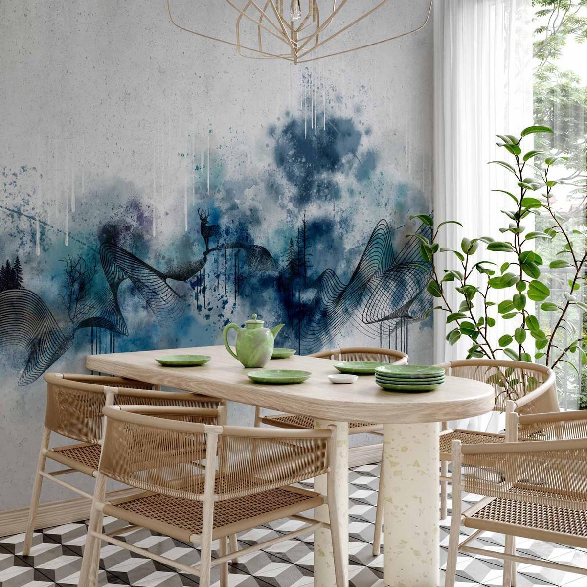 Papier peint – Vague abstraite, composition minimaliste avec motif bleu