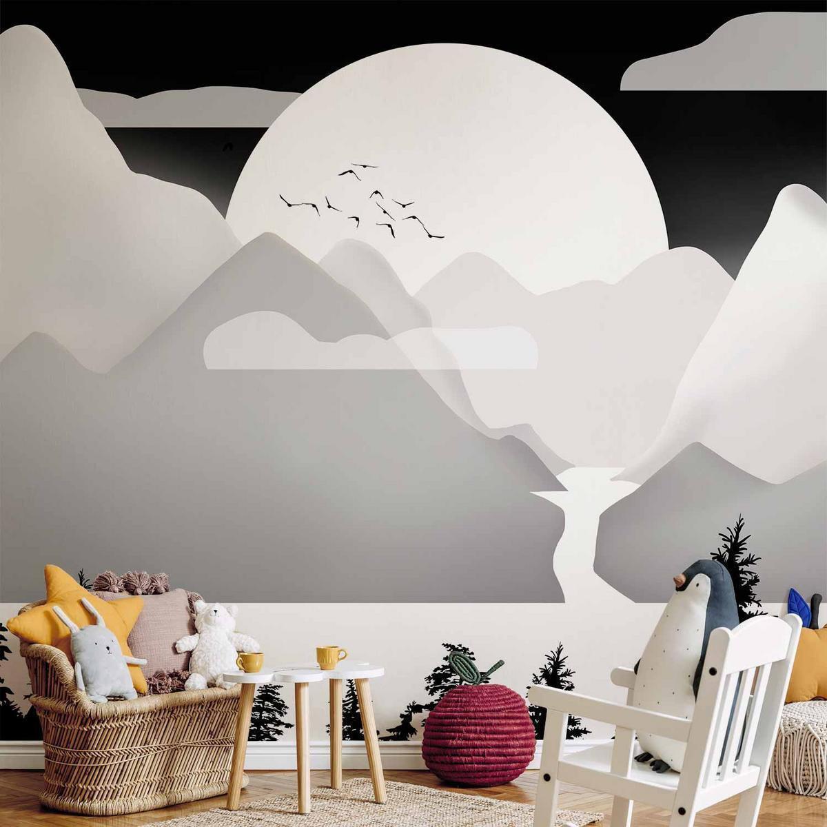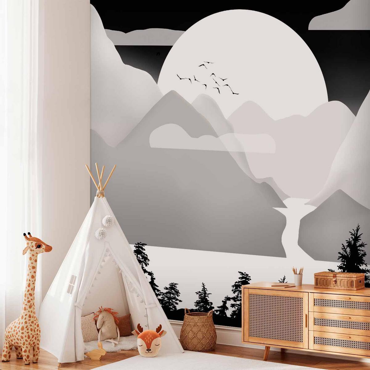 Transformez votre intérieur avec le Papier peint – Paysage au coucher de soleil – Seconde variante, une œuvre captivante qui évoque la sérénité de la nature. Avec sa finition premium et lavable, il allie esthétique et praticité, apportant une touche élégante à n’importe quelle pièce.