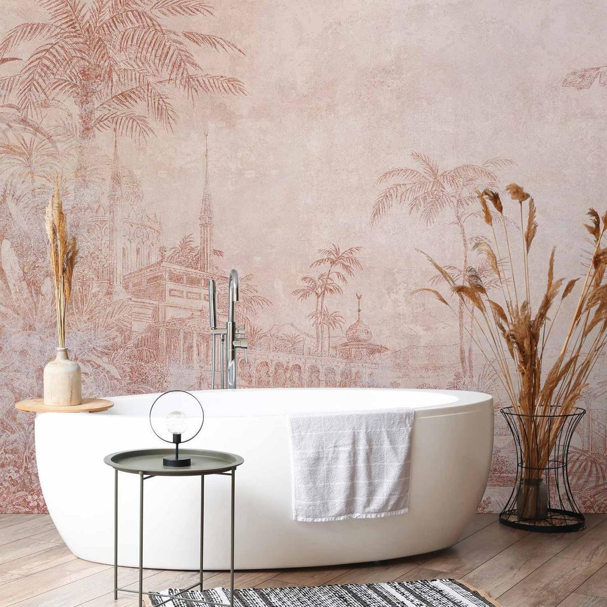 Papier peint – Paysage avec temple et architecture indienne entourée de palmiers