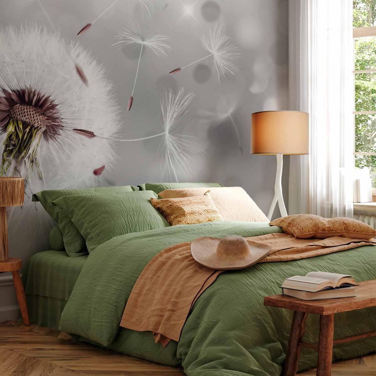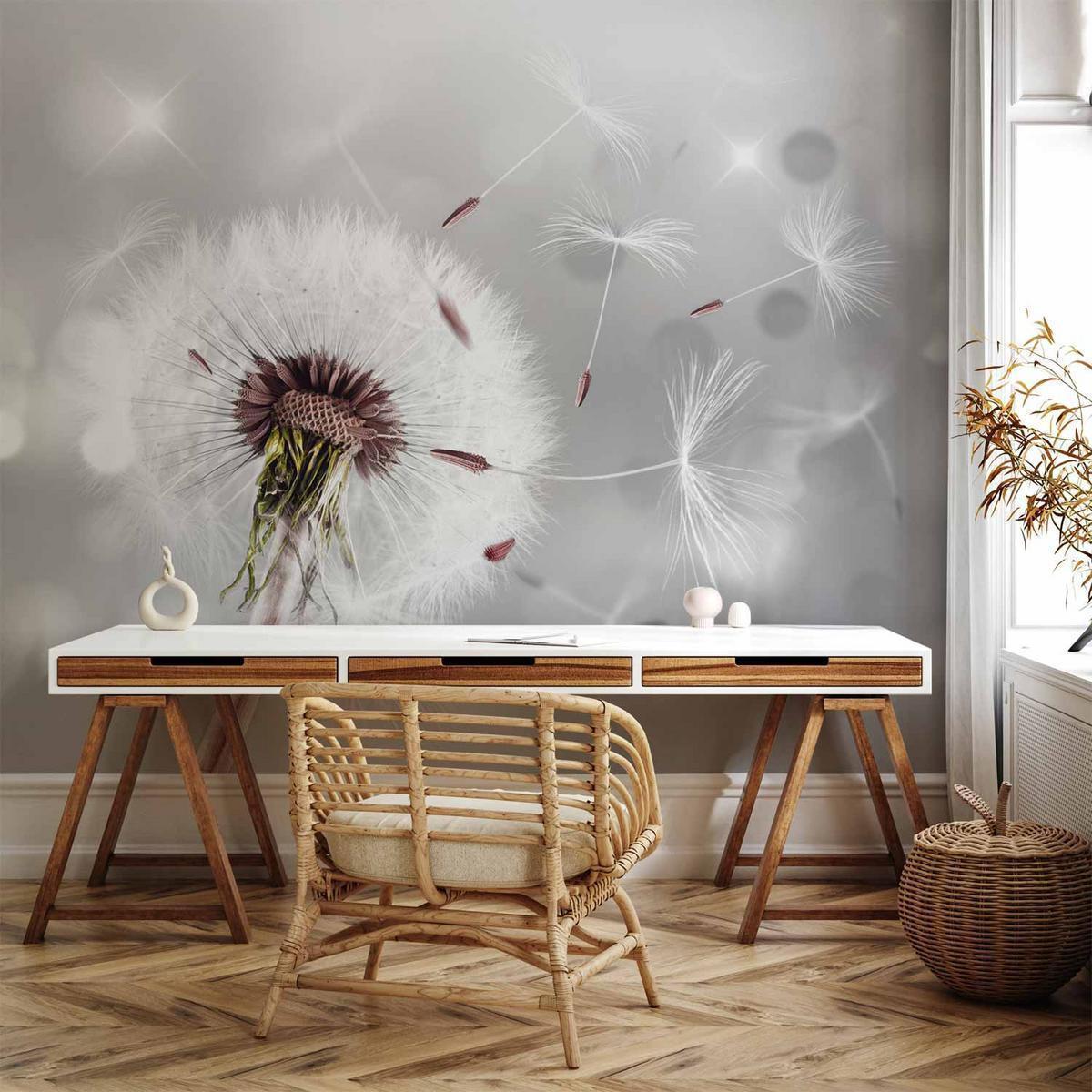 Papier peint – Fleurs de Pissenlit en Gris et Nature