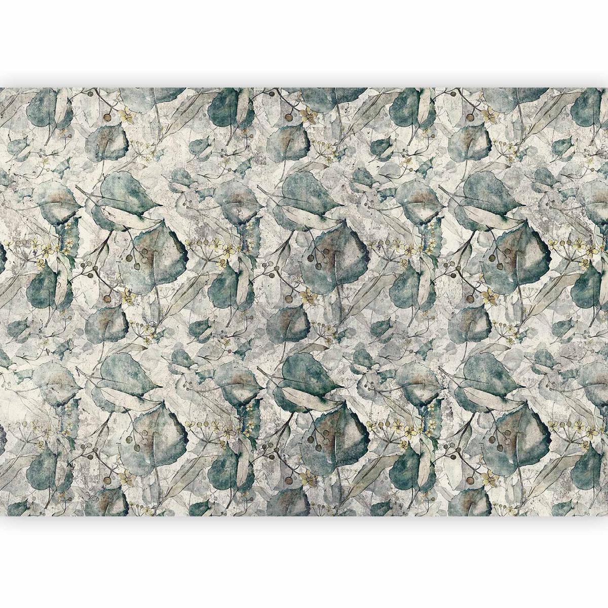 Papier peint – Souvenirs d’automne avec un motif floral gris subtil et des feuilles