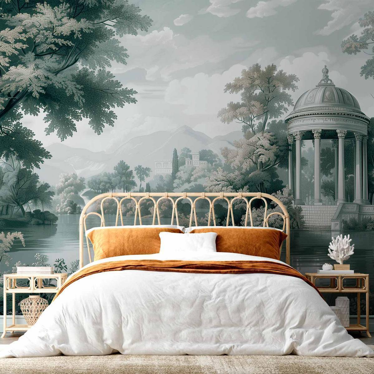 Papier peint – Vue du parc et du lac paysage rétro vintage en vert